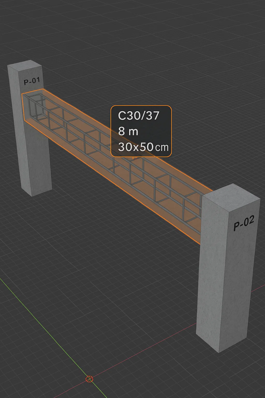> Create reinforced concrete beam C30/37 with 8m span, section 30x50cm...